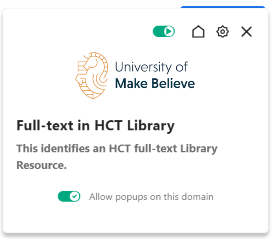 This message appears when patrons land on Google, highlighting the Lean Library extension and reminding them of its purpose. Short, simple messages like this help ensure that students remain aware of the support available from their library.