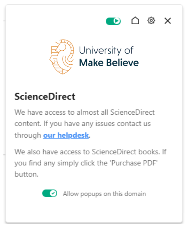 In this use case, Lean Library users are reminded of the support available to them through an assist message deployed when they land on the ScienceDirect homepage.
