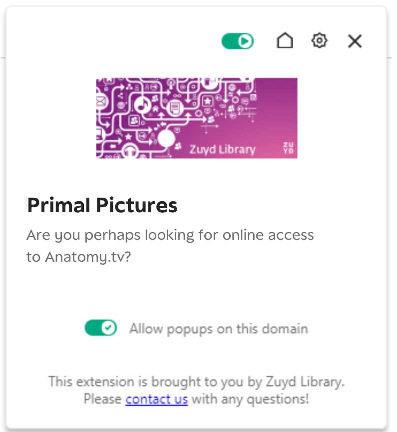 Communicating the full range of services the library provides can be challenging, as the services the library pays for stretch far beyond books and journals! Zuyd Hogeschool reminds patrons landing on Primal Pictures that they have access to the Anatomy TV resource through the library.