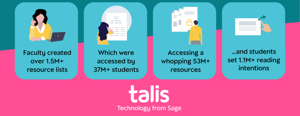 Thank you to all our partner universities and congratulations on achieving these wonderful results on Talis Aspire. More exciting improvements and developments are planned for Talis Aspire next year, including improved reviews and acquisitions workflows and enhanced integrations to better streamline how librarians make acquisitions from Talis Aspire.