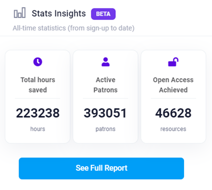Useful stats and insights are key to any library in demonstrating the value of a technology they implement. That's why Lean Library launched a new Stats Insight Dashboard that provides insights on Lean Library's stats on real-benefit factors including: