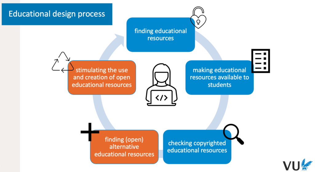 How is this achieved? As described on the graphic above (fig. 2), VU begins by ensuring their provision has the correct tools for the job and that their systems are organized logically and in a structured manner to encourage the goal of stimulating the use of open educational resources.